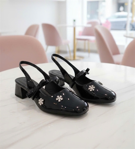 Giày Bít Mũi HT Nơ Hoa Trà Pha Lê - GV